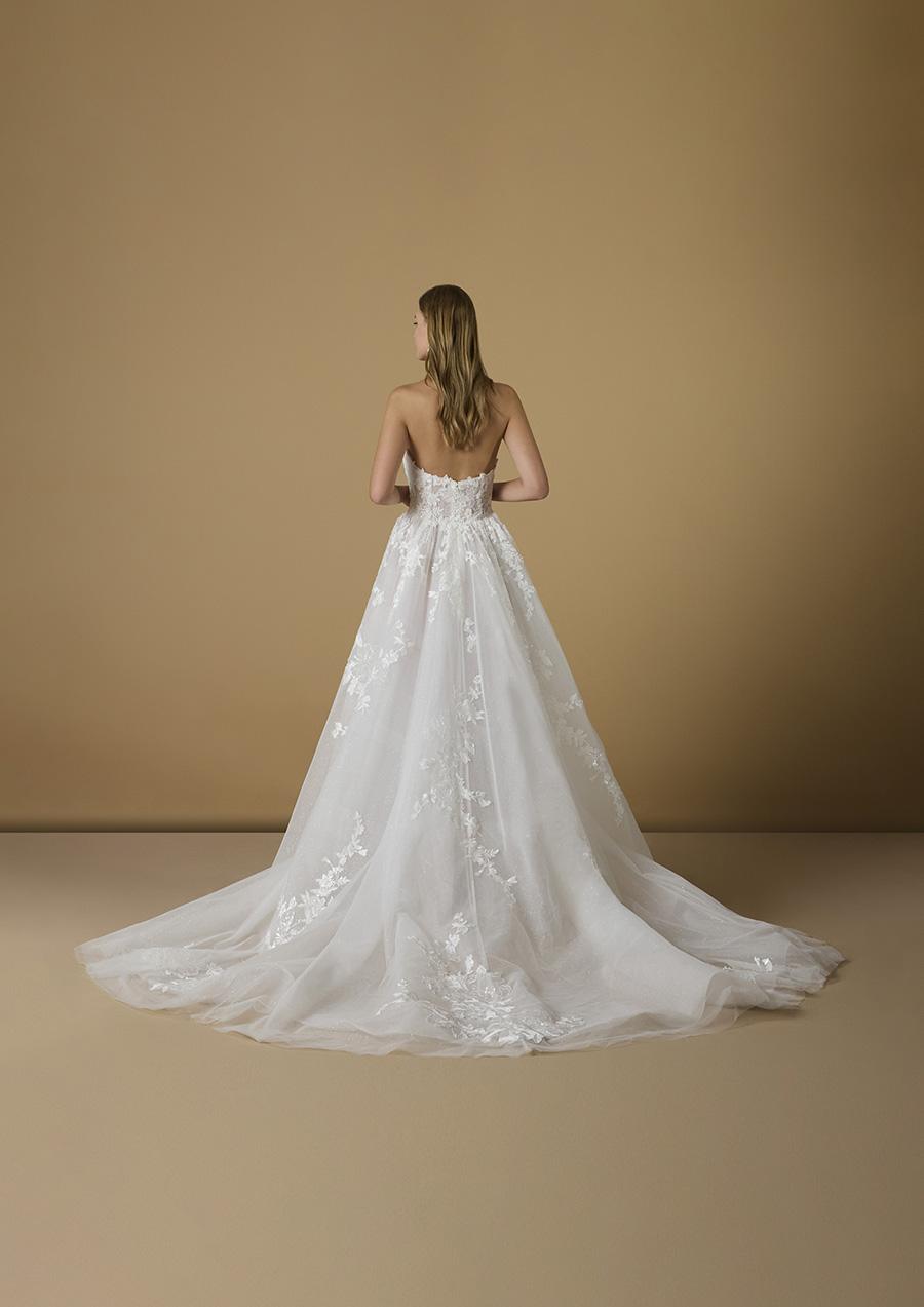 Abito da sposa modello OIFE presentato dal brand italiano NICOLE MILANO modello principessa con scollo a barca