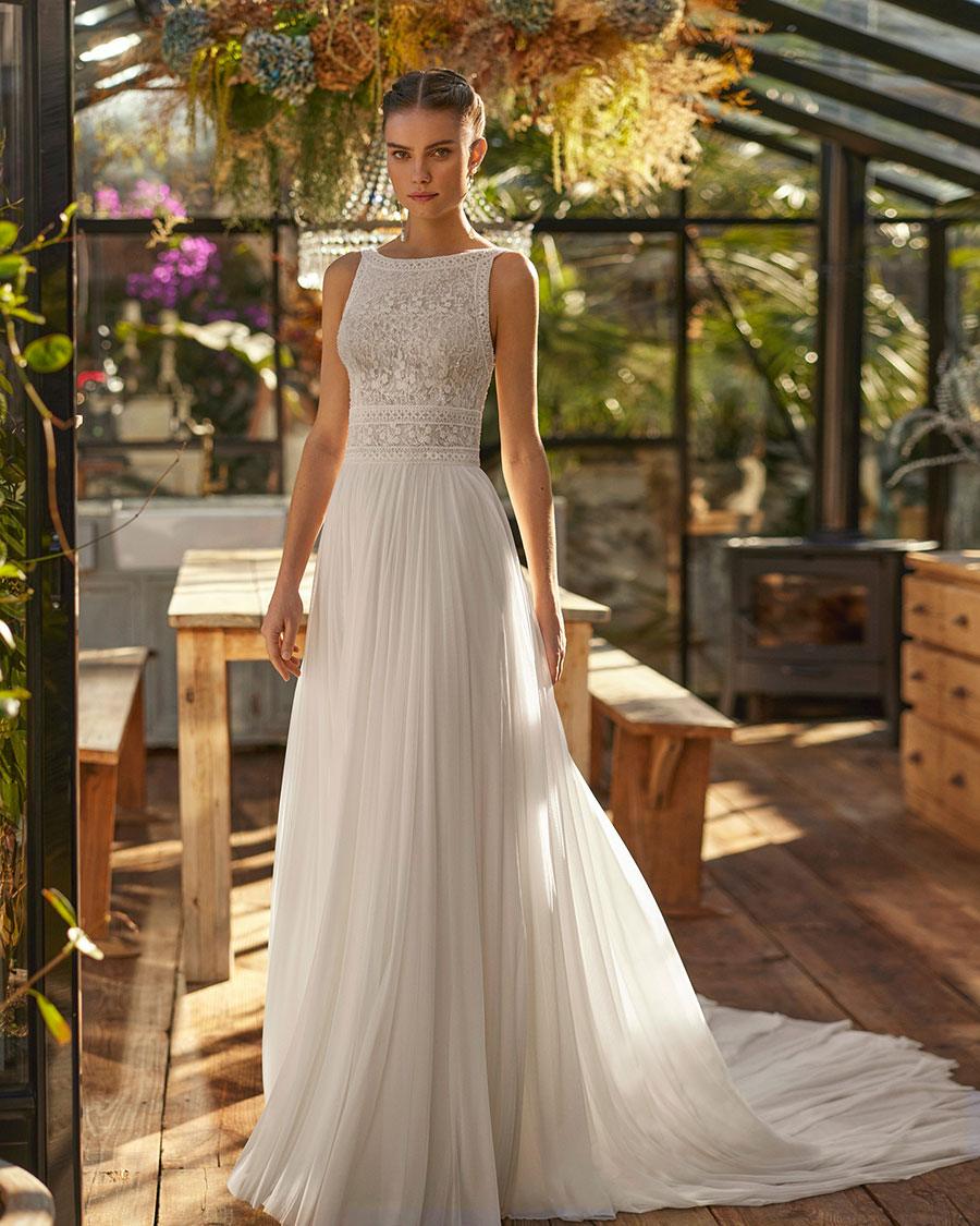 Romantico abito da sposa UMARI realizzato in pizzo. Con scollo, schiena scoperta, questo esclusivo look Aire Diamond è perfetto per te.