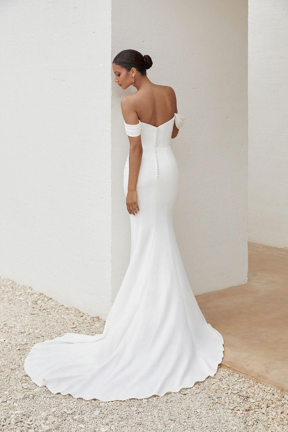 Abito da sposa svasato e aderente in crêpe con scollo a cuore plissettato