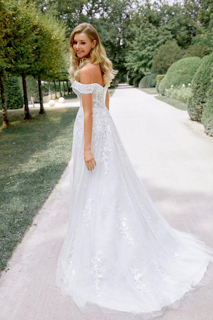 This wedding dress made with a fantastic lace and a sweetheart neckline is one of the novelties of the Preview of the 2026 Collection by Jastin Alexander Sincerity collection.