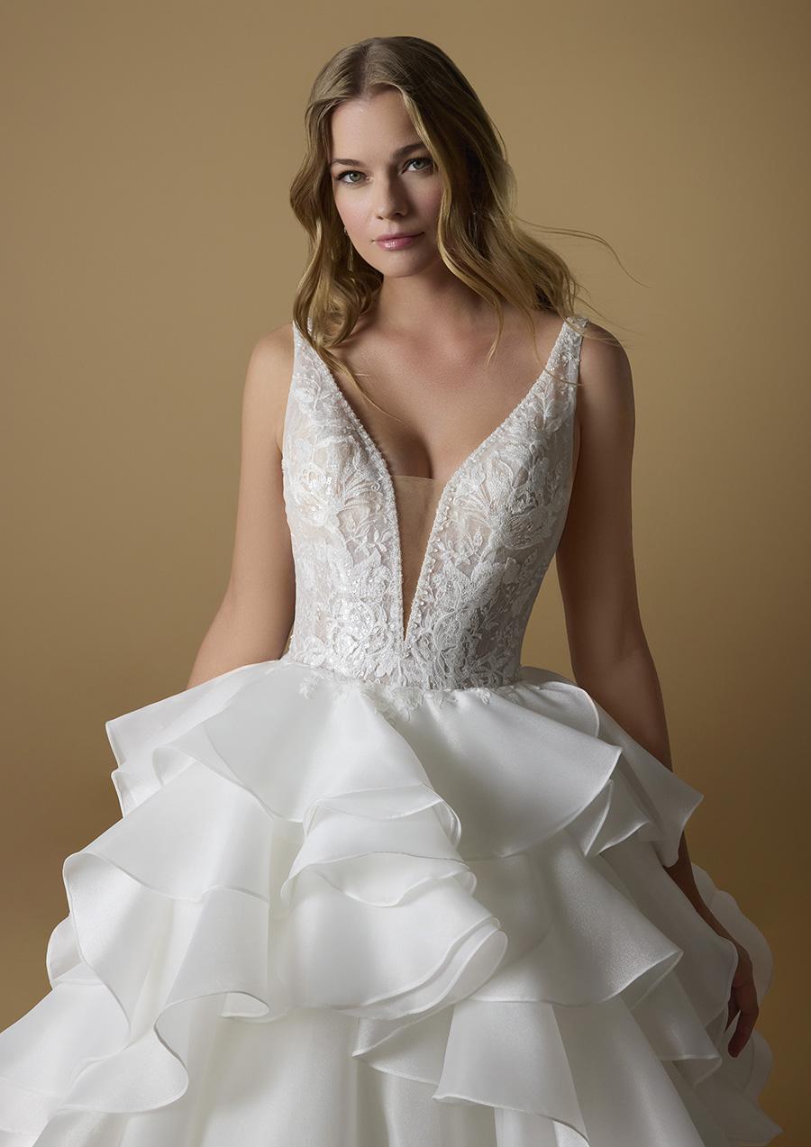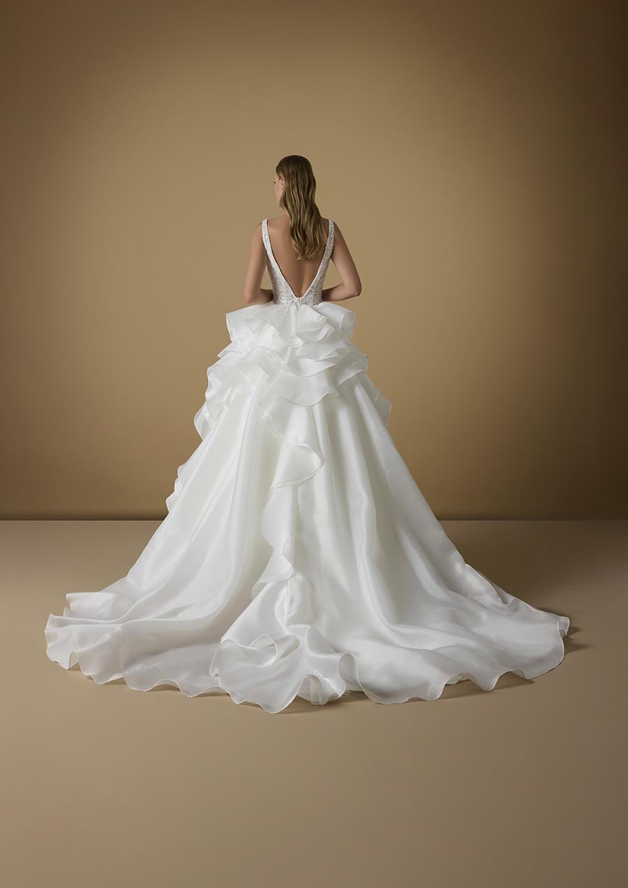 DEIDA wedding dress presented by the Italian brand NICOLE MILANO, princess with tulle ruffles that make it unique